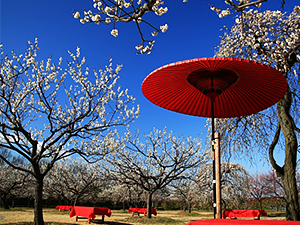 神崎町の遊楽山と呼ばれる丘にあり、神前(かむさき)神社南に隣接します。地元町内会が昭和40年代の頃から梅林を管理してきました。約150本の梅林の開花時には、梅まつりが行われ、多くの花見客でにぎわいます。結実期には「梅ちぎり」の行事が行われ、青梅の即売もあります。