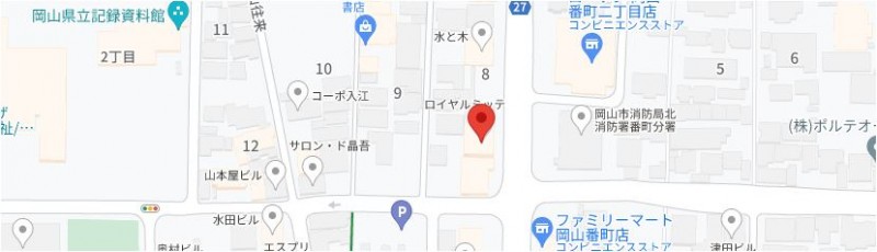 | 所在地 | 岡山市北区西古松西町8-21 BrunoBldg. 大元駅より徒歩10分 |