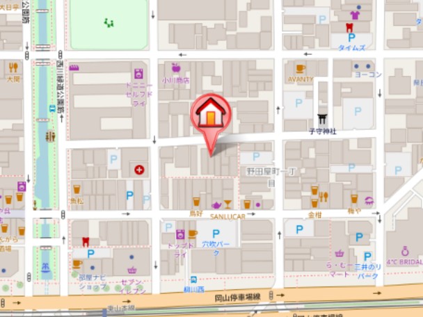| 所在地 | 岡山市北区西古松西町8-21 BrunoBldg. 大元駅より徒歩10分 |