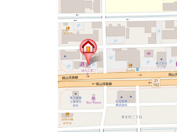 住所は岡山市北区厚生町2丁目になります。