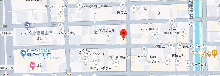 住所は岡山市北区柳町1丁目になります。