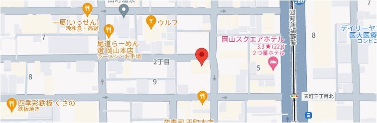 | 所在地 | 岡山市北区西古松西町8-21 BrunoBldg. 大元駅より徒歩10分 |