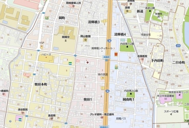 住所は岡山市北区奥田1丁目になります。