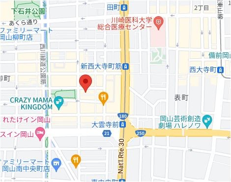 | 所在地 | 岡山市北区西古松西町8-21 BrunoBldg. 大元駅より徒歩10分 |