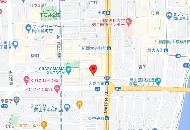 | 所在地 | 岡山市北区西古松西町8-21 BrunoBldg. 大元駅より徒歩10分 |