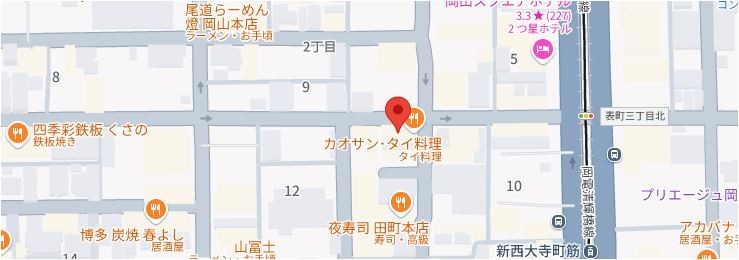 | 所在地 | 岡山市北区西古松西町8-21 BrunoBldg. 大元駅より徒歩10分 |