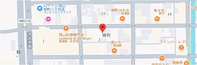 住所は岡山市北区柳町2丁目になります。