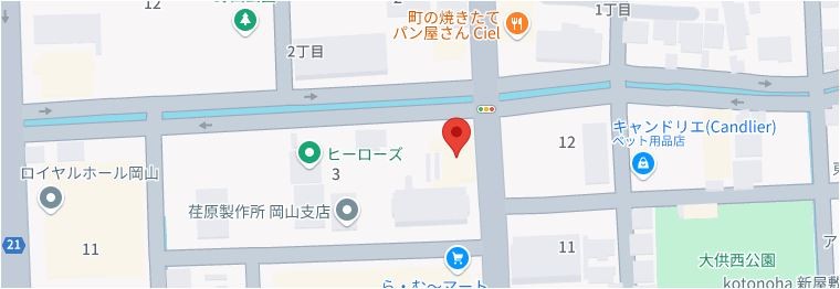 | 所在地 | 岡山市北区西古松西町8-21 BrunoBldg. 大元駅より徒歩10分 |