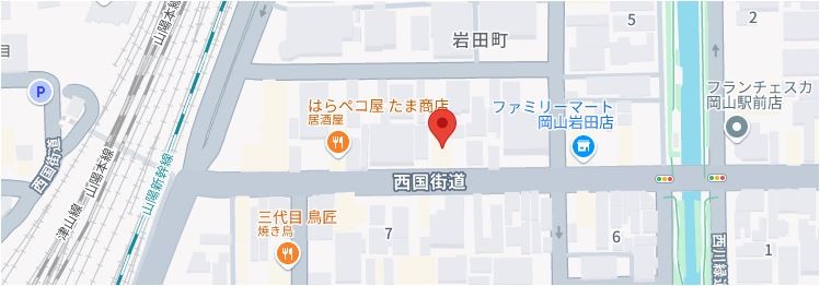 | 所在地 | 岡山市北区西古松西町8-21 BrunoBldg. 大元駅より徒歩10分 |