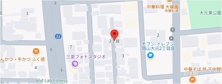 | 所在地 | 岡山市北区西古松西町8-21 BrunoBldg. 大元駅より徒歩10分 |
