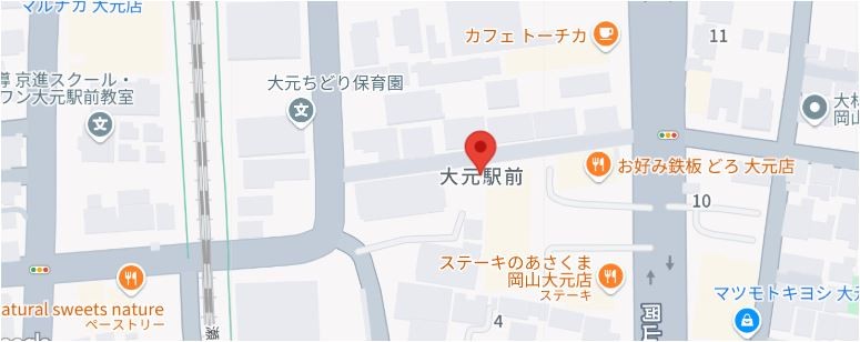 | 所在地 | 岡山市北区西古松西町8-21 BrunoBldg. 大元駅より徒歩10分 |
