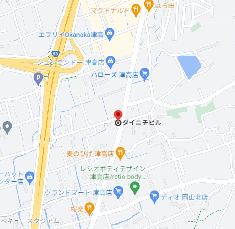 | 所在地 | 岡山市北区西古松西町8-21 BrunoBldg. 大元駅より徒歩10分 |