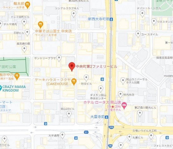 | 所在地 | 岡山市北区西古松西町8-21 BrunoBldg. 大元駅より徒歩10分 |
