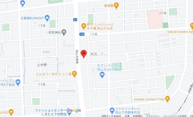 | 所在地 | 岡山市北区西古松西町8-21 BrunoBldg. 大元駅より徒歩10分 |