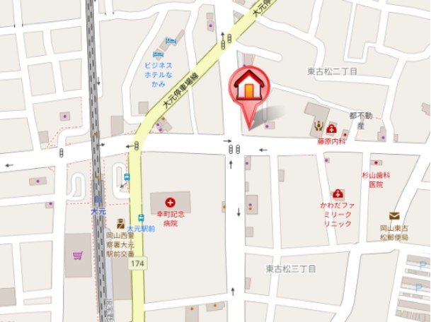 | 所在地 | 岡山市北区西古松西町8-21 BrunoBldg. 大元駅より徒歩10分 |