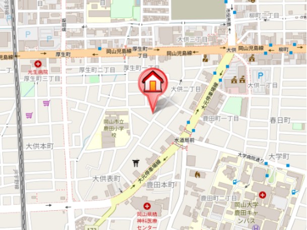 住所は岡山市北区大供表町になります。