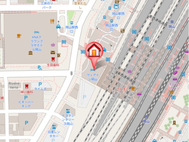 | 交通 | JR山陽本線「岡山駅」徒歩4分 JR赤穂線「岡山駅」徒歩4分 JR津山線「岡山駅」徒歩4分 |