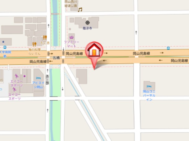 | 所在地 | 岡山市北区西古松西町8-21 BrunoBldg. 大元駅より徒歩10分 |