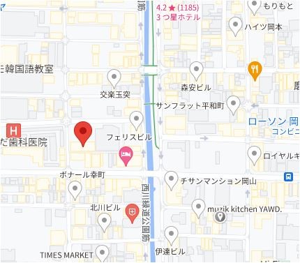 | 所在地 | 岡山市北区西古松西町8-21 BrunoBldg. 大元駅より徒歩10分 |