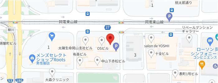 | 所在地 | 岡山市北区西古松西町8-21 BrunoBldg. 大元駅より徒歩10分 |