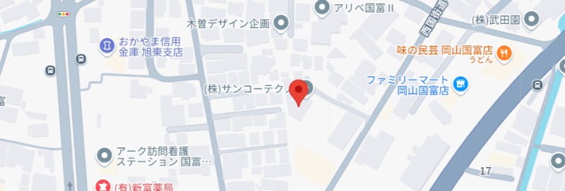 住所は岡山市中区国富になります。