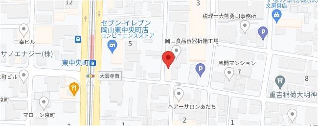 住所は岡山市北区東中央町になります。