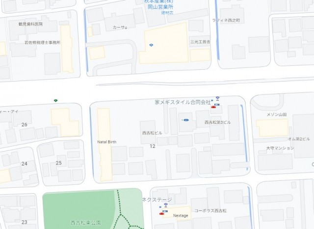 住所は岡山市北区西古松1丁目になります。