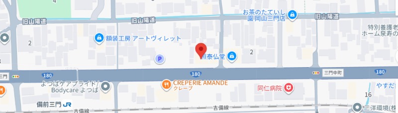 | 所在地 | 岡山市北区西古松西町8-21 BrunoBldg. 大元駅より徒歩10分 |