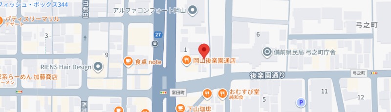 住所は岡山市北区弓之町になります。