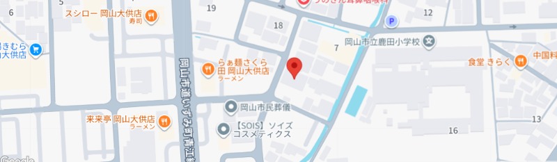 | 所在地 | 岡山市北区西古松西町8-21 BrunoBldg. 大元駅より徒歩10分 |