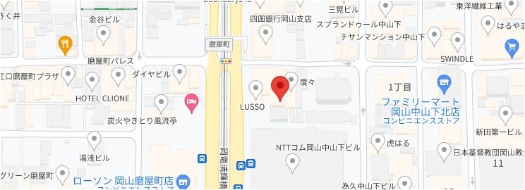 | 所在地 | 岡山市北区西古松西町8-21 BrunoBldg. 大元駅より徒歩10分 |