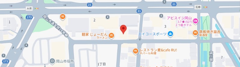 | 所在地 | 岡山市北区西古松西町8-21 BrunoBldg. 大元駅より徒歩10分 |