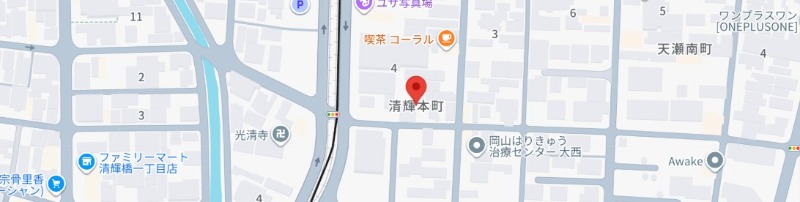 | 所在地 | 岡山市北区西古松西町8-21 BrunoBldg. 大元駅より徒歩10分 |